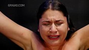 c. Slave humiliation and amateur bondage Masochist punishment of a kinky brunette chained and punished by Louise Red in a handmade bdsm