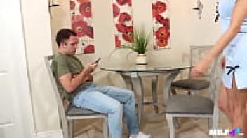 Babysitter Big Boobs Laying by Nice Dong and Giving Head