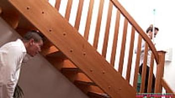 An angry blonde white female confronts a black guy upstairs, and throughout the confrontation, she is roughed up very severely.