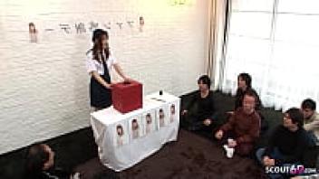 At a photo shoot, a slender Japanese teen seduces Creampie for group sex.