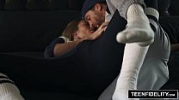 Stephanie Caine, a teen babe who is wearing a uniform, goes for a big cock.