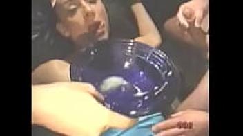 A huge blowgang young lady gets bukkake cum over her face and deepthorat.