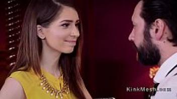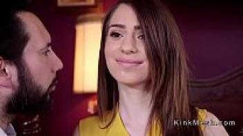 Blonde teen in threesome bondage, loved