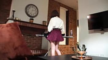 In her tight pussy joi, a blonde, thick teacher tried a black inflatable dildo.