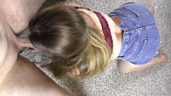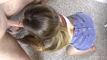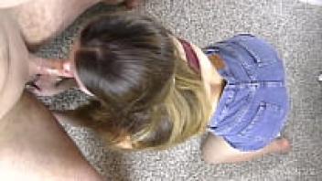 An attractive amateur deepthroat blowjob with a teen's big ass in panties