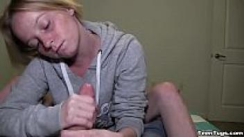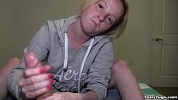Blonde PAWG MILF having a massive dick and sucking on young lovers at the same time