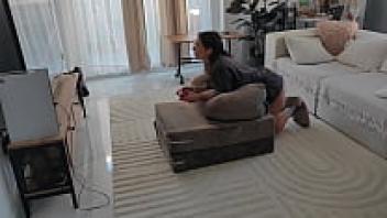 The brunette babysitter let her boss love her head hard and came deep down her throat after losing a bet.