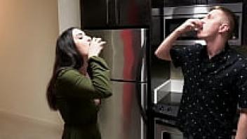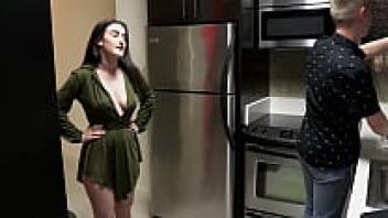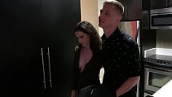A funny brunette milf uses a big, hard cock to open her pussy.