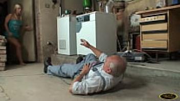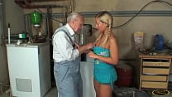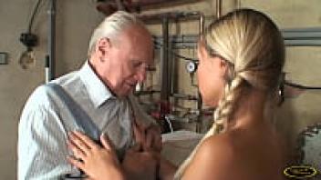 The elderly man in the cellar pretends to be ill in order to love the stunning blonde virgin.