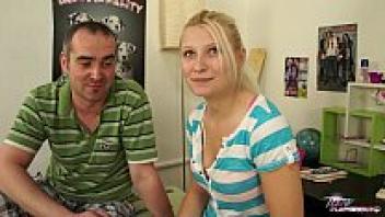 MY18TEENS - A skinny teen with little tits who loves a pussy with a huge cock and gets cum in their mouth during the encounter