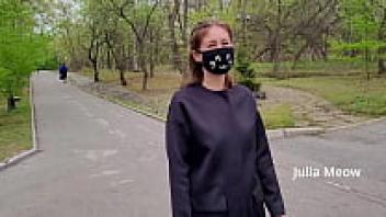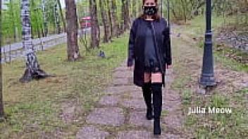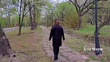 Natalia, decked out in a pair of tight leggings, strolls down the street.