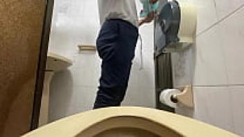 A nurse gets caught on camera urinating in the hospital restroom (large stream).