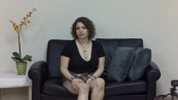 At the PORN casting, a sexy teen wearing spandex leggings and outfitted in love