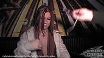 Before the club opens, a gorgeous club girl is seen masturbating in the DJ booth.