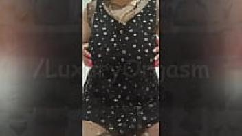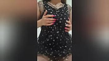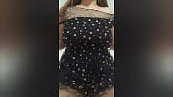 Big tits are played with by a busty cutie wearing a seductive dress.