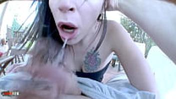 piercings, natural boobs, glasses, ass cumshot, tattoos, lingerie, fishnets, large cock, blowjob, brunette, anal, milf, anal sex, and doggy style