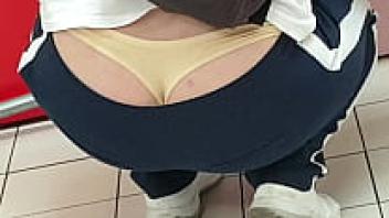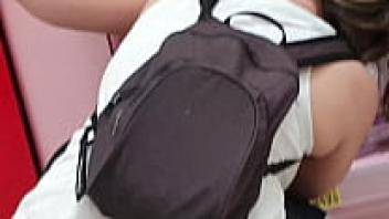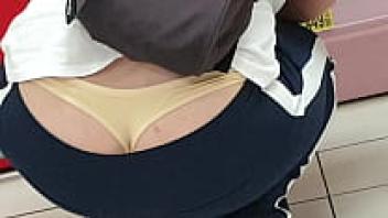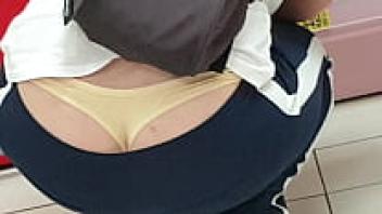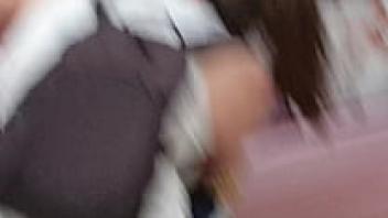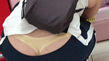 A glimpse of a gorgeous Asian woman wearing an upskirt and flashing panties