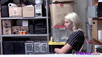 A blonde thief with tattoos smashed to stretch her pussy.