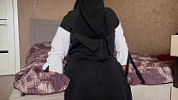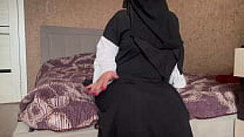 While masturbating her pussy, an Arab woman wearing a headscarf experienced a double orgasm.