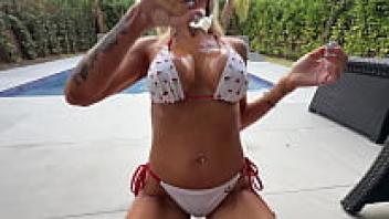 adoring Big Tits's stepmother by the swimming pool Harlow, Sarah