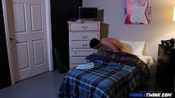 During the wee hours of the morning, I was able to catch my stepfather jerking around in the living room.