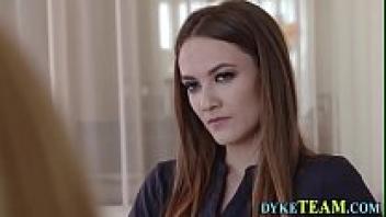 The brunette gets in the mood to scissor when she and the lesbian housesitter play stripping games.