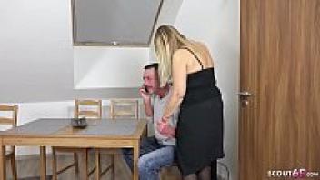 Naomi, a German mother, seduces her stepson in the kitchen.