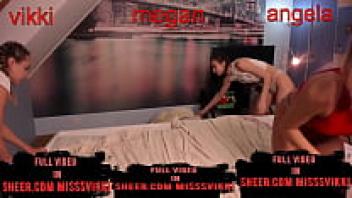 On a sex webcam, Mila Azul strips and displays her shaved pussy, ass, and natural big tits.