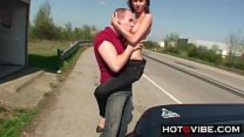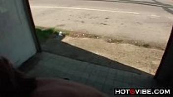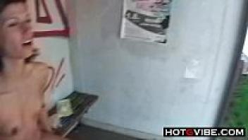Public sex gangbang street threesome with a skinny teenage girl