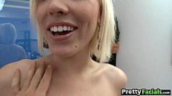 A lovely facial is given to a blonde newbie.