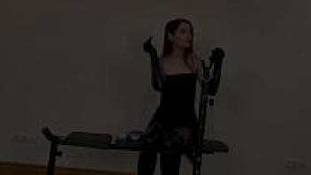 Projectfundiary: Table love concludes with hot cum on her latex thigh while wearing a tight latex catsuit and leather ankle boots.