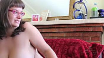 Hairy BBW Cameron Skye shoves a dildo in her ass.