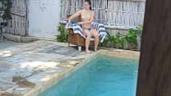 On the beach, a Voyeur is seen masturbating over a gorgeous Southeast Asian pussy.