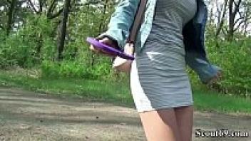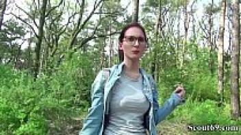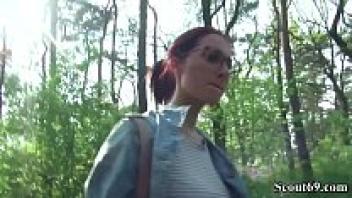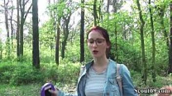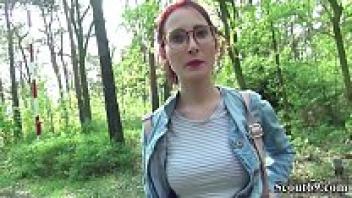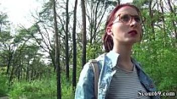 Redhead Teen Lia, a German Scout, is being cast in public.