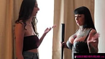 In a seductive girlfriends' movie encounter, mob babe Aria Sloane bows to Jessie Lee's orders.