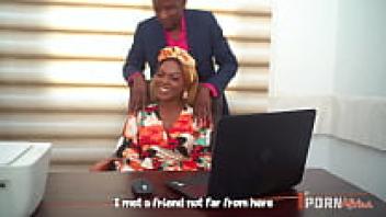 To entice the employer and milk his massive cock, Horny Ebony MILF uses her seductive lips, large tits, and ass during the job interview. FAKEhub is the source of this information.