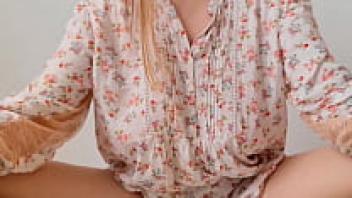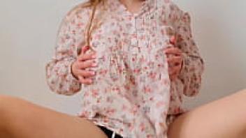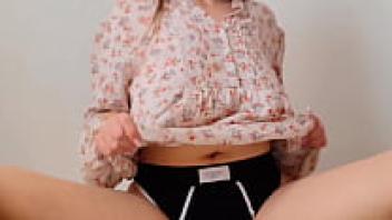 A young student with brown hair and enormous tits records amateur footage with her phone.