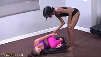 Havana Ginger, Jada Fire, Angel Eyes, Dark-skinned, athletic, outie pussy, bubble butt, tattooed, large tits, anal, natural tits, ebony, Leggings, tank top, trimmed pussy, and foot oil