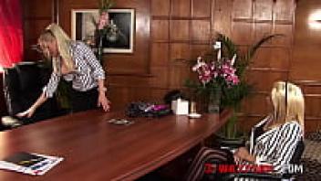 Crazy Secretary Sex With Two Gorgeous Busty Blondes in 3-Way Porn