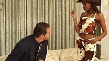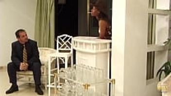 Rough MMF Threesome is seduced by a midget Latina maid.