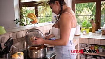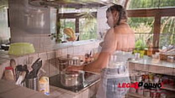A curvy bombshell After titty love GP665, Chloe Lamour rides a veiny cock on the kitchen floor.