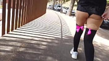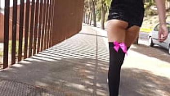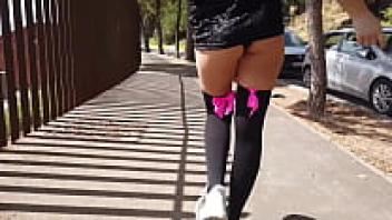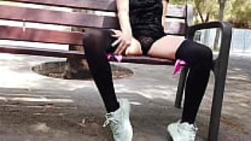 ASMR closeup of a hairy, creamy, oozing pussy during a dangerous public upskirt masturbating