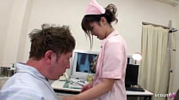 In uncensored JAV porn, a Japanese nurse seduces a patient into loving a creampie.