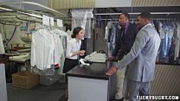 At the cleaners, Mila Jade, an Asian adolescent, is subjected to an interracial double penetration.
