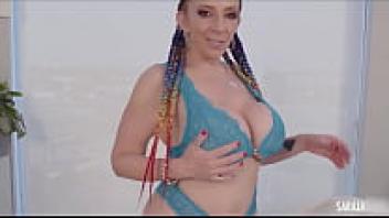a large booty Using a massive dildo, Sara Jay stuffs her mature pussy hole with a dildo!
