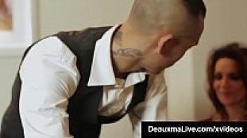 Deauxma, the horny cougar babe, adores the room service guy at the hotel!