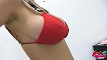 Teenage Tits Bubble Butt in a Red Bikini and High Heels