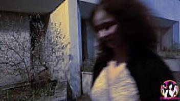 Double penetration in the yard by a stunning oriental brunette