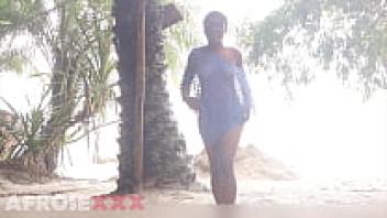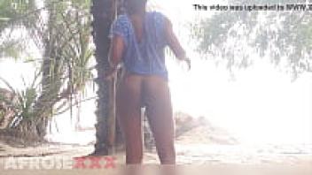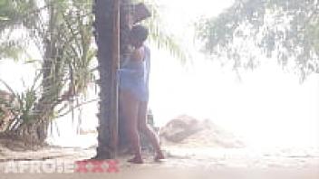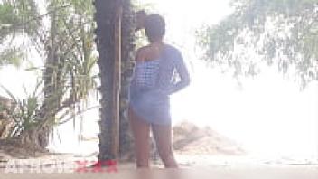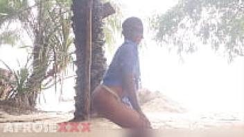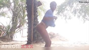 A black girl in public wiggling her nude ass