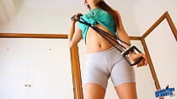 In a pair of tight leggings that exposes her puffy cameltoe, the perfect ASS 18-year-old